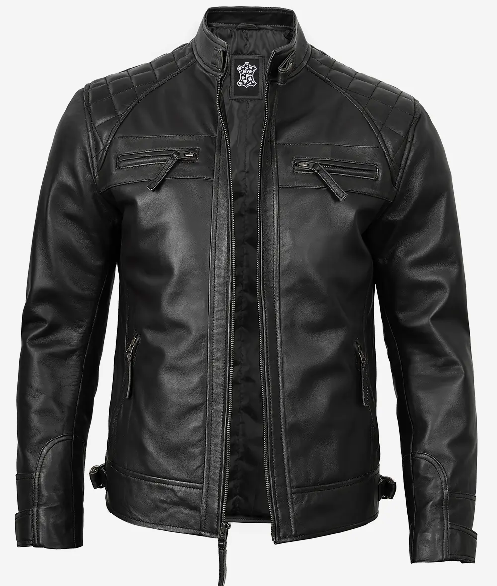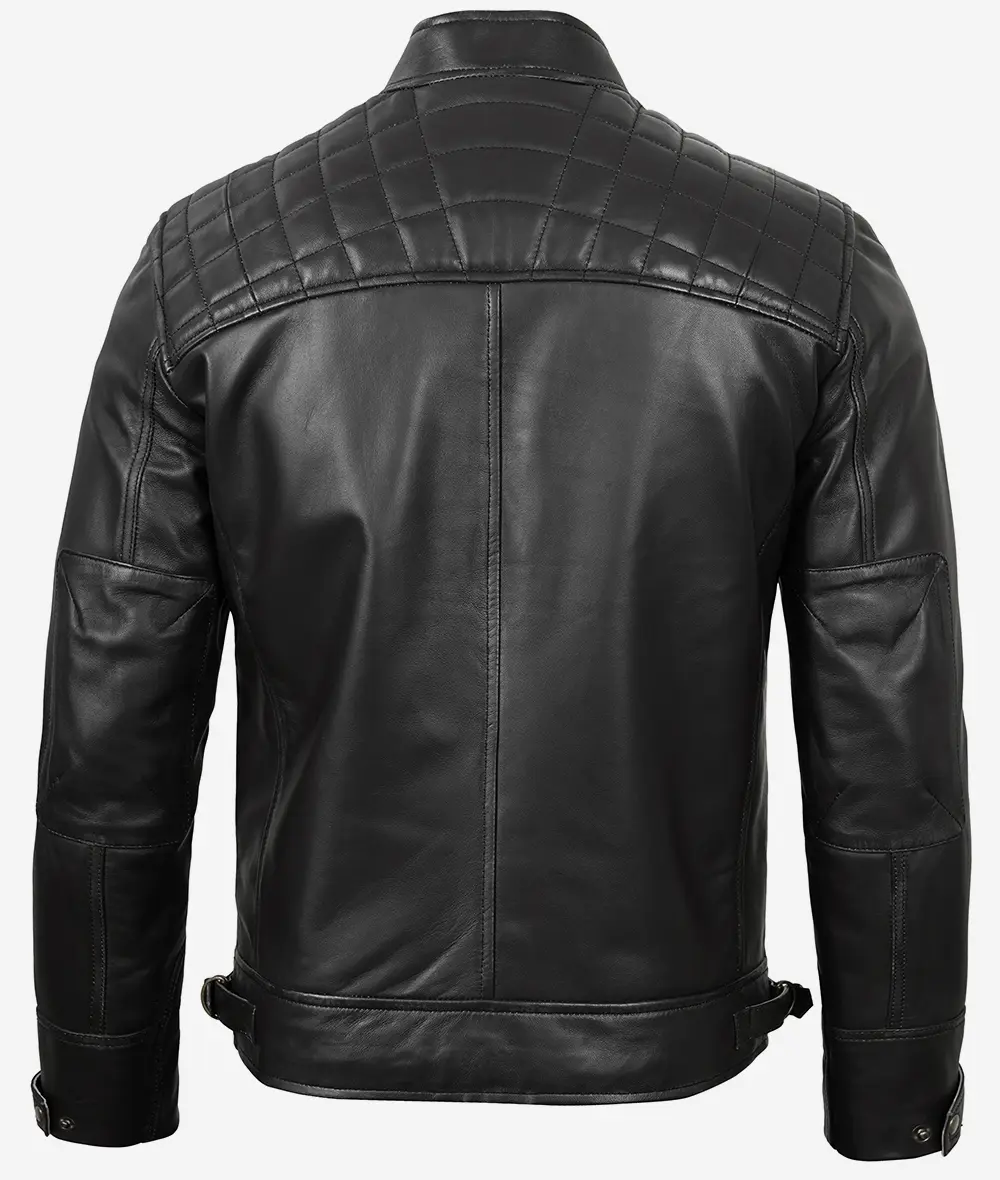 Men’s Black Quilted Biker Jacket – Premium Leather Finish