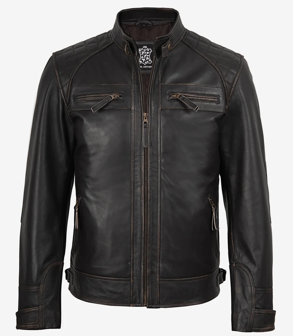 Men’s Real Leather Distressed Brown Biker Style Jacket