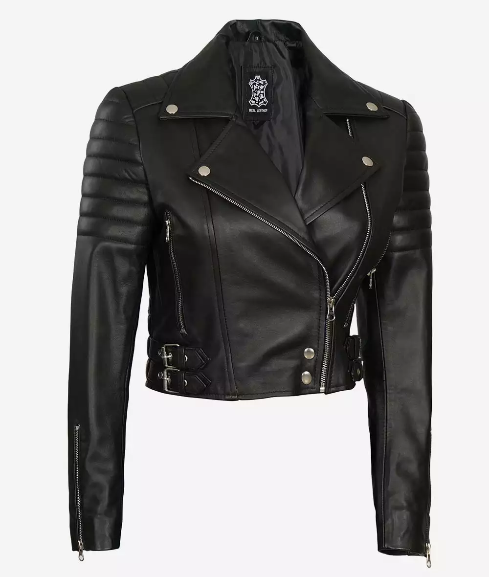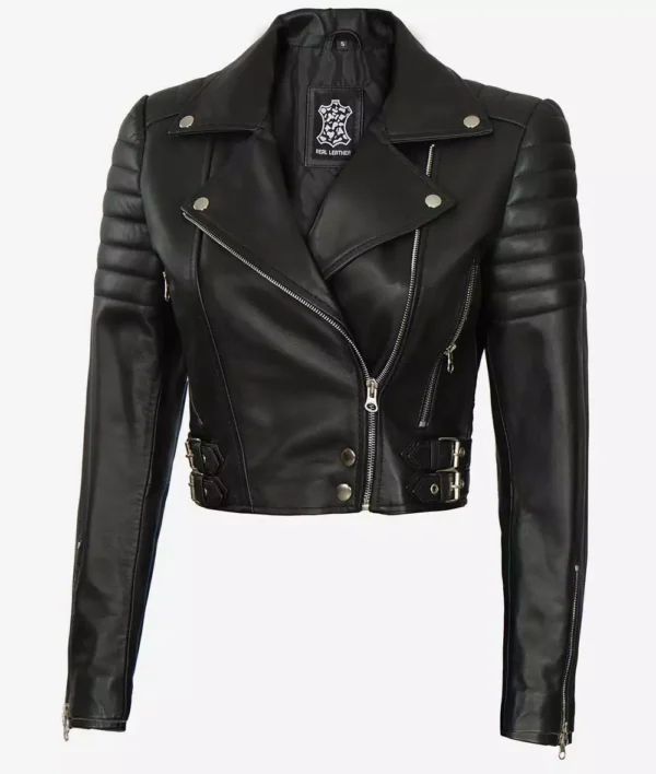 Black Cropped Moto Jacket for Women – Sleek Design