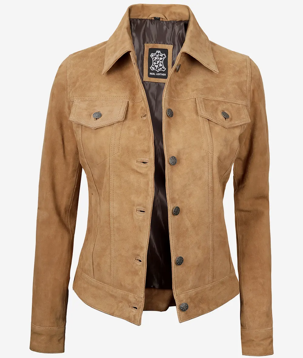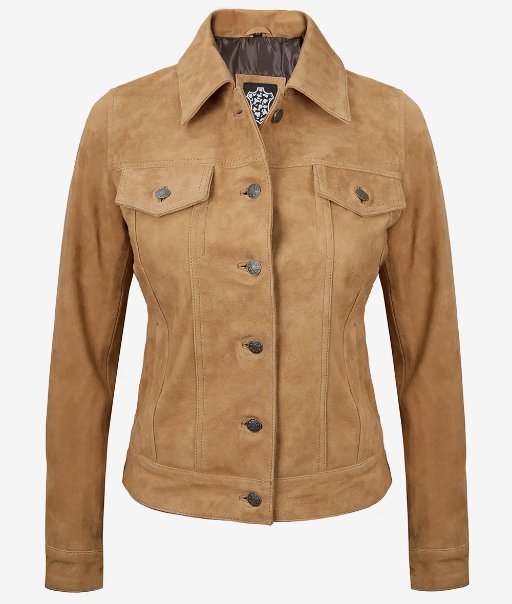 Women’s Suede Trucker Jacket – Light Brown Casual Wear